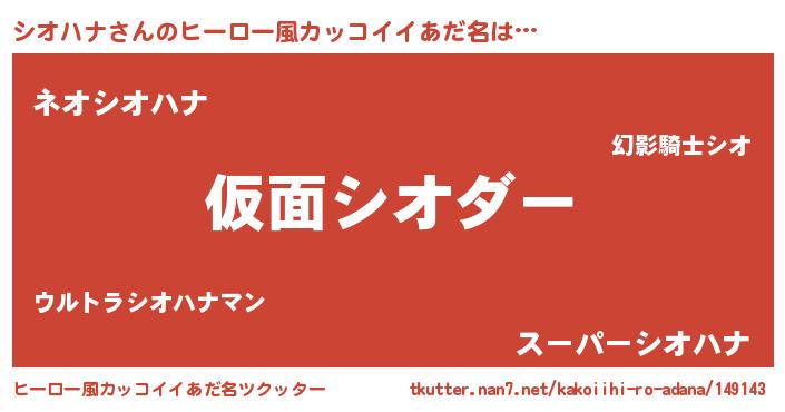 | 男性向けラノベタイトル風あだ名 | 『この素晴らしい世界にシオハナを!』 |