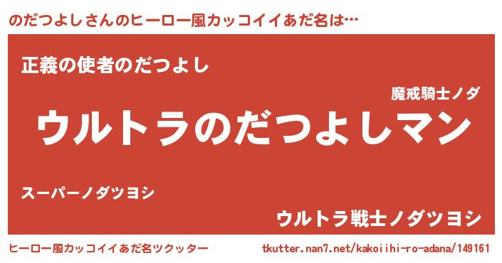 | 男性向けラノベタイトル風あだ名 | 『はたらくのだつよしさま!』 |