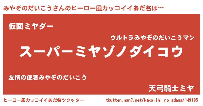 | 胡散臭い通販商品みたいなあだ名 | 『モテモテ間違いなし霊験あらたかなお札…その名も「みやぞのだいこう」』 |