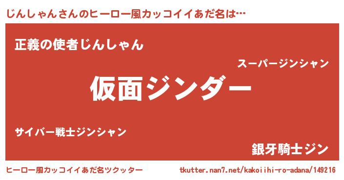 | 男性向けラノベタイトル風あだ名 | 『魔弾の王とじんしゃん』 |