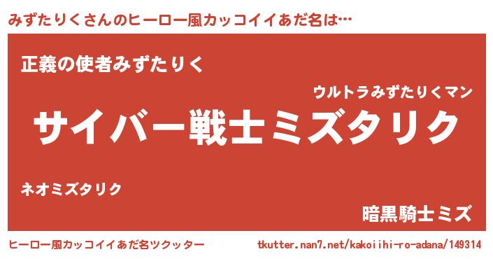 | 男性向けラノベタイトル風あだ名 | 『みずたりくに滅ぼされるだけの簡単なお仕事です』 |
