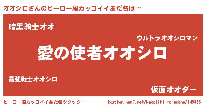 | 男性向けラノベタイトル風あだ名 | 『ノーゲーム・ノーオオシロ』 |