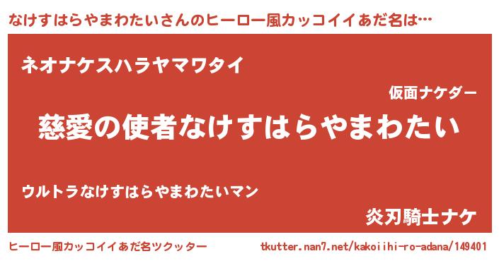 | 男性向けラノベタイトル風あだ名 | 『ノーゲーム・ノーナケスハラヤマワタイ』 |