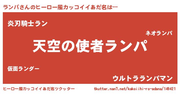 | 男性向けラノベタイトル風あだ名 | 『ランパに滅ぼされるだけの簡単なお仕事です』 |