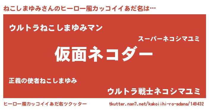 | 男性向けラノベタイトル風あだ名 | 『この素晴らしい世界にねこしまゆみを!』 |