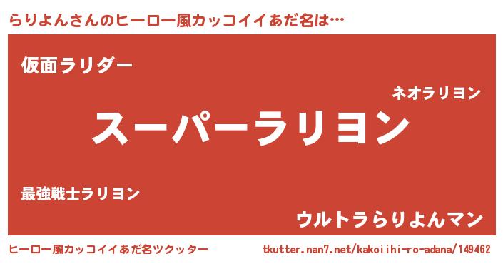 らりよんさんのヒーロー風カッコイイあだ名をツクッター!