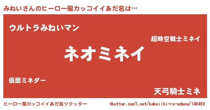 | 胡散臭い通販商品みたいなあだ名 | 『来世でも幸せになれる健康食品…その名も「みねい」』 |