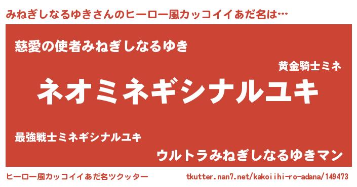 | 男性向けラノベタイトル風あだ名 | 『誰もが恐れるあのみねぎしなるゆきが、ぼくの専属メイドになるようです。』 |