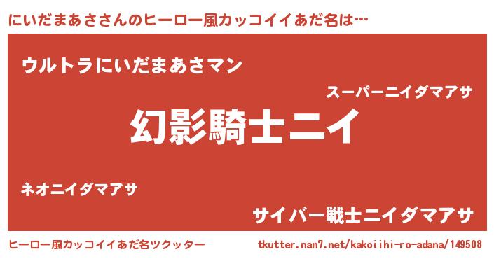 | 男性向けラノベタイトル風あだ名 | 『にいだまあさの嫁は女の子じゃないと思った?』 |