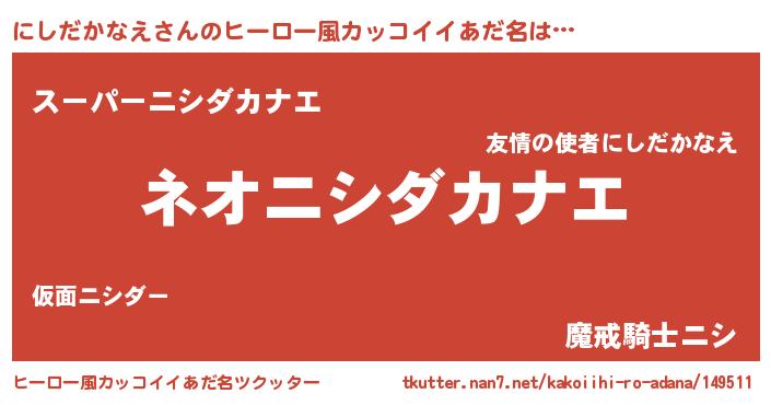 | 男性向けラノベタイトル風あだ名 | 『にしだかなえという概念が存在しない退屈な世界 』 |