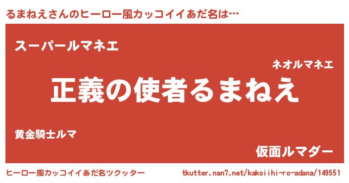 | 男性向けラノベタイトル風あだ名 | 『緋弾のルマネエ』『るまねえの憂鬱』 |