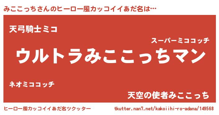 | 女子向けラノベタイトル風あだ名 | 『みここっちの雑貨屋さん』 |