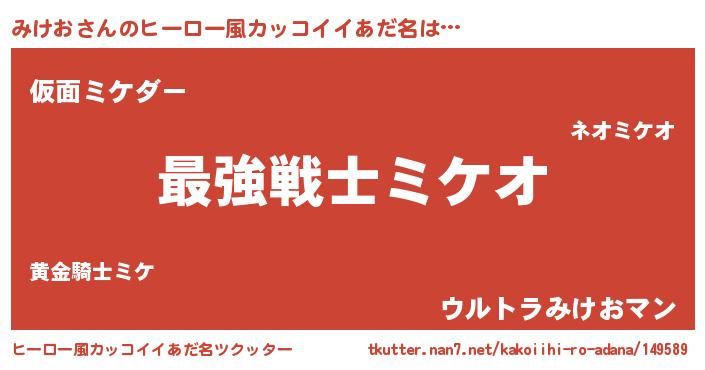 | 伝説のあだ名 | 『最古の忍者みけお』『伝説の傭兵みけお』 |