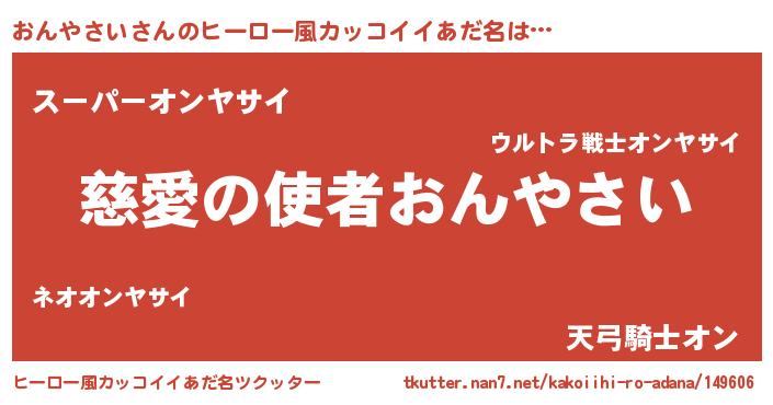 | 女子向けラノベタイトル風あだ名 | 『死神おんやさいの再婚』 |