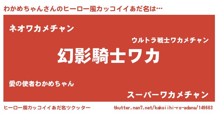 | 男性向けラノベタイトル風あだ名 | 『わかめちゃんの嫁は女の子じゃないと思った?』 |