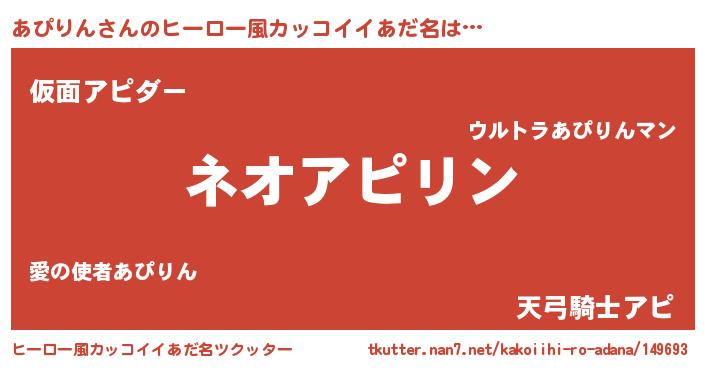 | 男性向けラノベタイトル風あだ名 | 『あぴりんという概念が存在しない退屈な世界 』 |