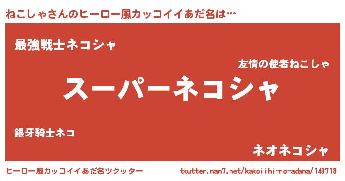 | 男性向けラノベタイトル風あだ名 | 『ねこしゃの憂鬱』 |