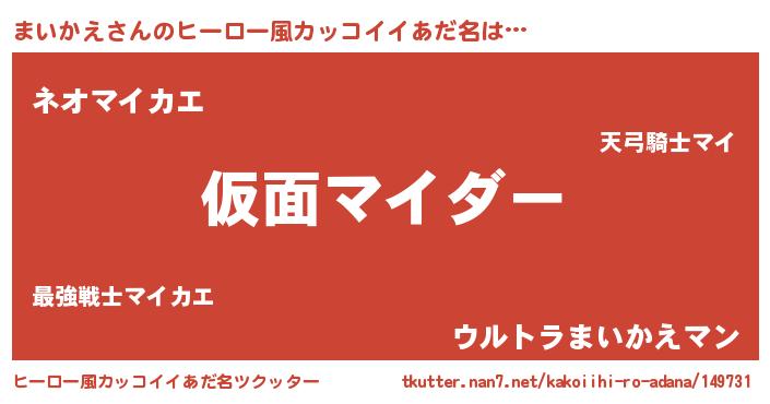 | ポケモン風あだ名 | 『マーイイ』『ゼニマイ』『マイゴンZ』 |