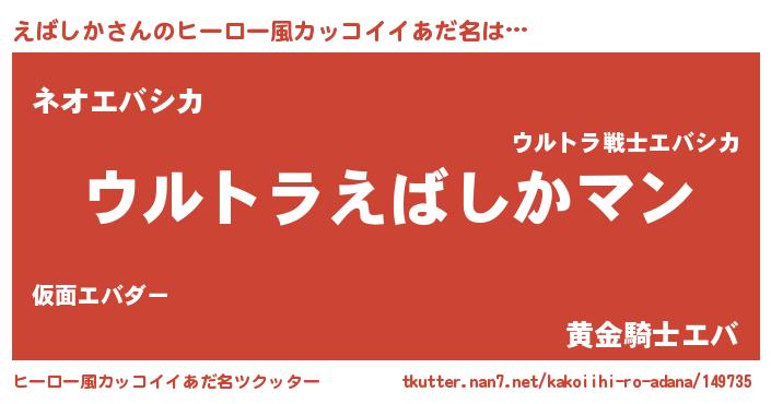 | 男性向けラノベタイトル風あだ名 | 『うちのえばしかが世界を掌握している!』 |