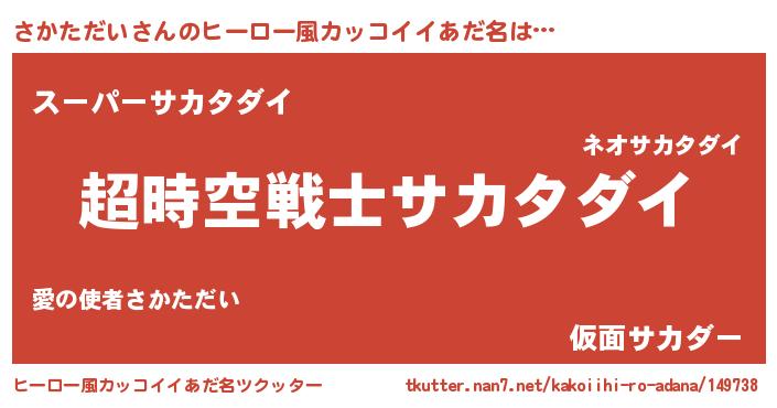 | 女子向けラノベタイトル風あだ名 | 『さかただいなんてお断りですっ。』 |