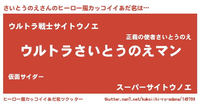 | 意味不明あだ名 | 『さいとうのえフォーエバー』 |