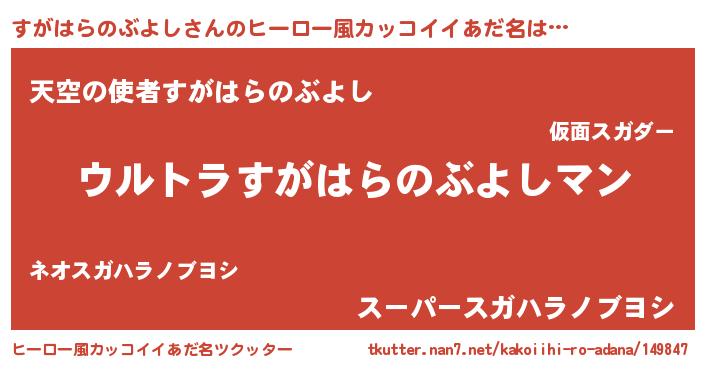 | 男性向けラノベタイトル風あだ名 | 『はたらくすがはらのぶよしさま!』 |