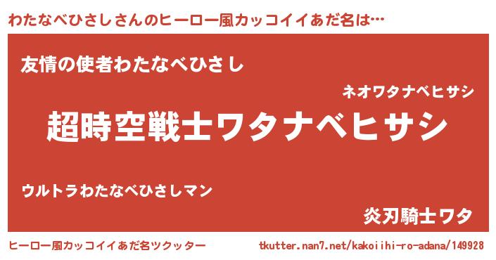| ヘコむあだ名 | 『わたっぺ』『わたなべひさし(笑)』 |