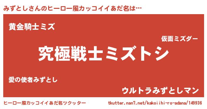 | 男性向けラノベタイトル風あだ名 | 『Re:みずとしから始める異世界生活』 |