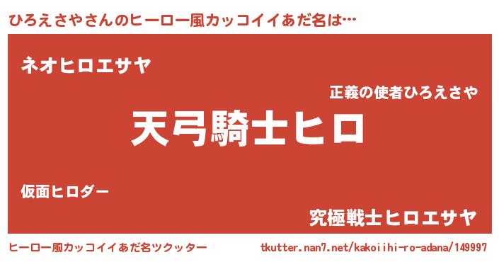 | 男性向けラノベタイトル風あだ名 | 『ひろえさや~年齢イコール彼女いない歴の魔法使い~』 |