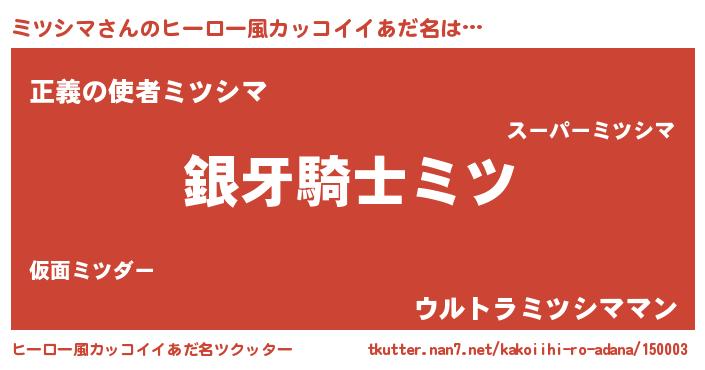 | 胡散臭い通販商品みたいなあだ名 | 『伝統あるサプリメント…その名も「ミツシマ」』 |