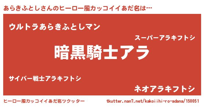 | 女子向けラノベタイトル風あだ名 | 『あらきふとしは平凡を望む』 |
