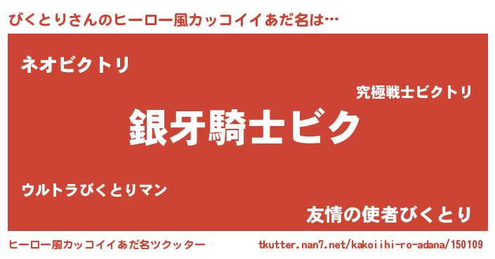 | 男性向けラノベタイトル風あだ名 | 『びくとりに滅ぼされるだけの簡単なお仕事です』 |