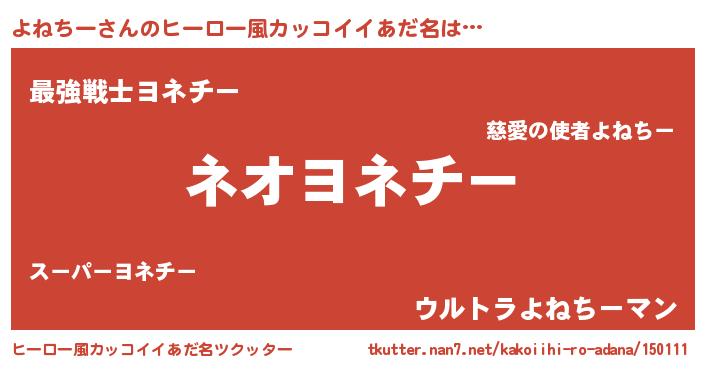 | 男性向けラノベタイトル風あだ名 | 『よねちーという概念が存在しない退屈な世界 』 |