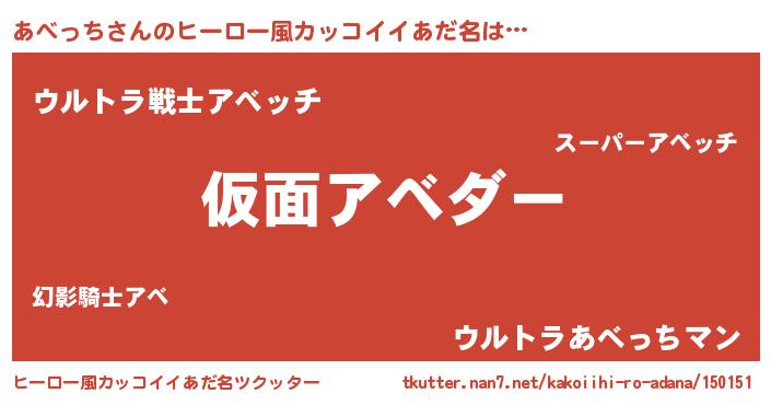 | 男性向けラノベタイトル風あだ名 | 『この素晴らしい世界にあべっちを!』 |
