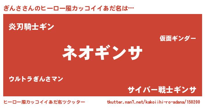 | 男性向けラノベタイトル風あだ名 | 『緋弾のギンサ』『魔弾の王とぎんさ』 |