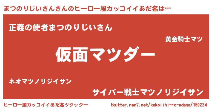 | 男性向けラノベタイトル風あだ名 | 『この素晴らしい世界にまつのりじいさんを!』 |
