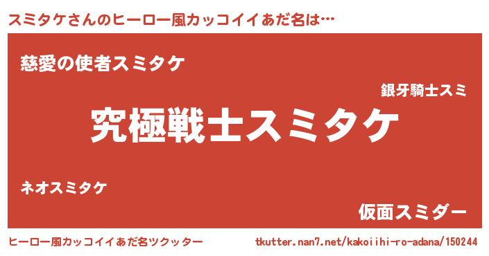 | 男性向けラノベタイトル風あだ名 | 『スミタケ~年齢イコール彼女いない歴の魔法使い~』 |