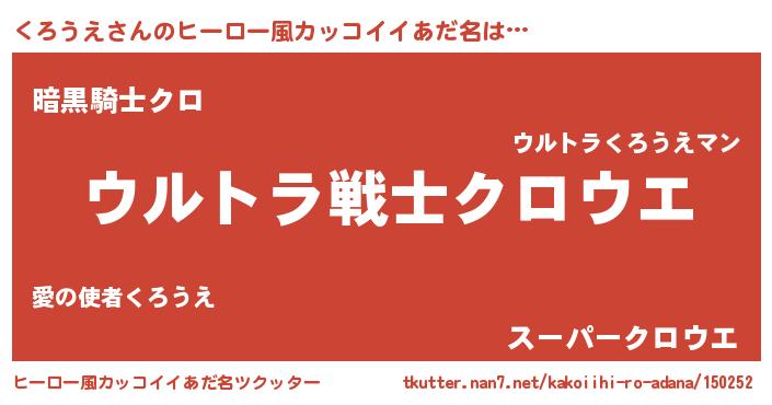 | 意味不明あだ名 | 『自称くろうえ』『めかぶ科くろうえ属』 |