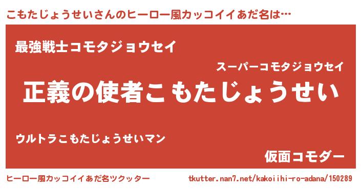 | 男性向けラノベタイトル風あだ名 | 『おまえをオタクにしてやるから、俺をこもたじょうせいにしてくれ! 』 |