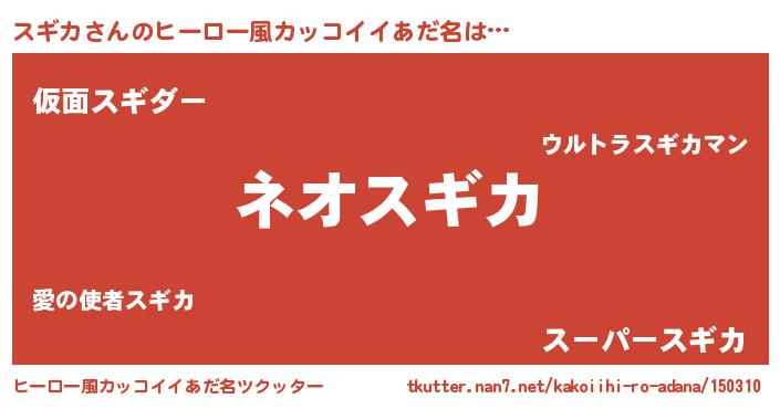 | 意味不明あだ名 | 『永久保存スギカ』『ペロリンスギカ』 |