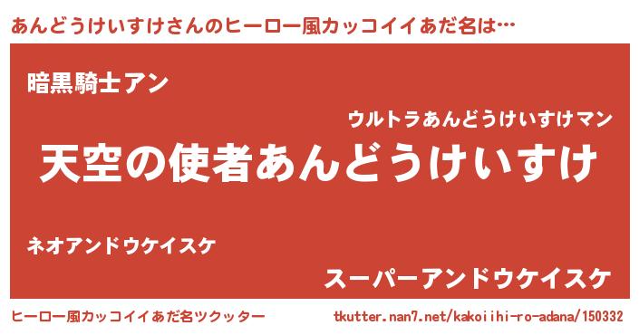 | 女子向けラノベタイトル風あだ名 | 『あんどうけいすけの玉の輿計画!』 |