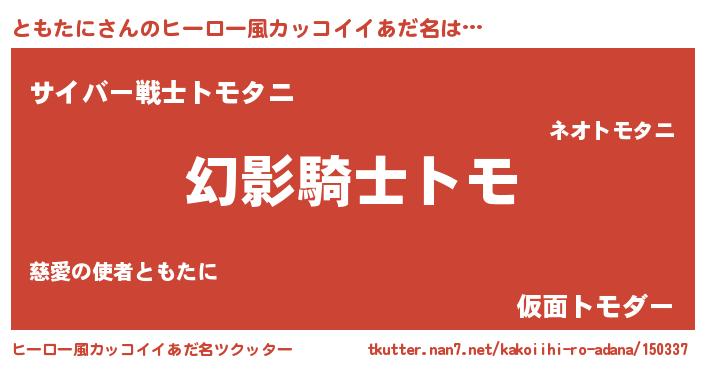 | 男性向けラノベタイトル風あだ名 | 『ともたにの嫁は女の子じゃないと思った?』 |