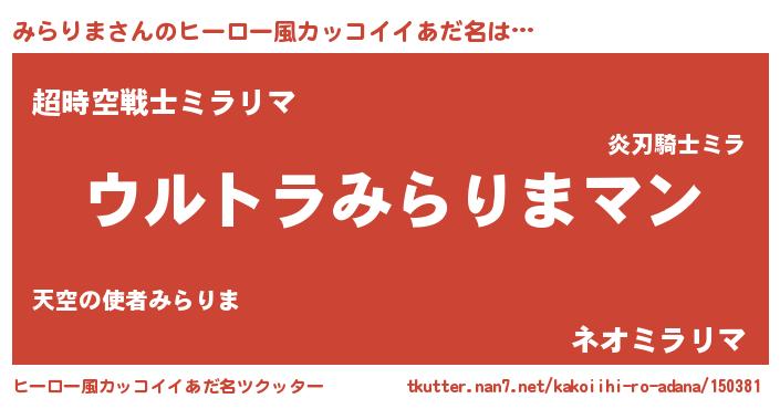 | 意味不明あだ名 | 『みらりまフォーエバー』『自称みらりま』 |