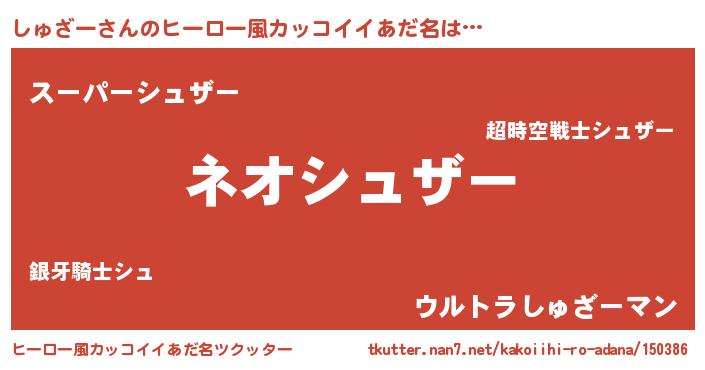 | 男性向けラノベタイトル風あだ名 | 『しゅざーという概念が存在しない退屈な世界 』 |