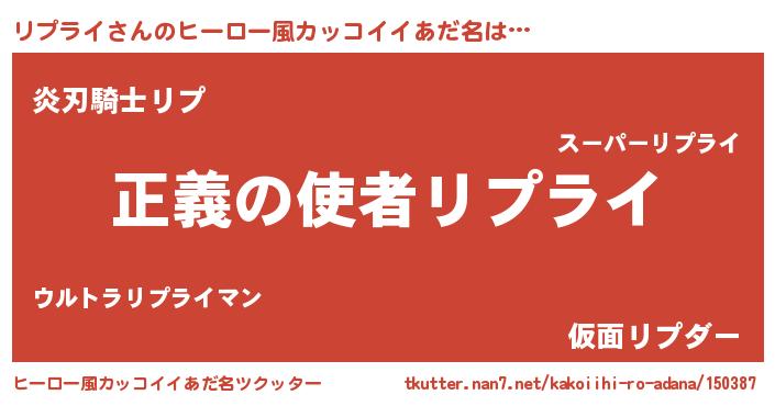 | ヘコむあだ名 | 『リプを』『リプふぇ~』『レバニラ』 |