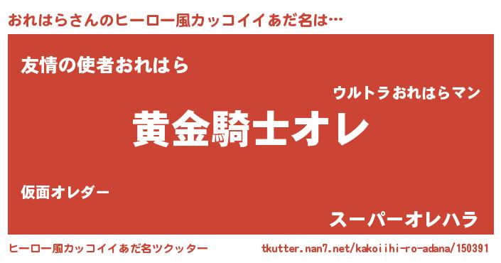 | 男性向けラノベタイトル風あだ名 | 『オレハラスレイヤー』『緋弾のオレハラ』 |