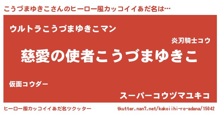 | 伝説のあだ名 | 『救世主となる占い師こうづまゆきこ』 |