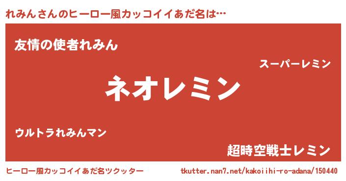 | 男性向けラノベタイトル風あだ名 | 『れみんという概念が存在しない退屈な世界 』 |