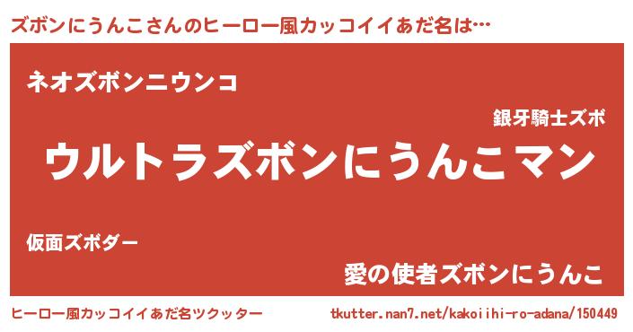 | ファンタジー風あだ名 | 『エターナルズボンニウンコー』 |