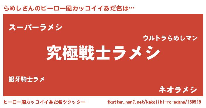 | 意味不明あだ名 | 『自称らめし』『めかぶ科らめし属』 |